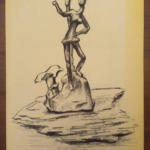 Disegno di una figura stilizzata rappresentante un uomo nell’atto dell’autostop, che sembra essere scolpito nel legno. Autore dell’opera: Franco Molteni. Dimensioni: 20,5×29,5 cm. L’opera è corredata dall’autentica del figlio dell’autore.