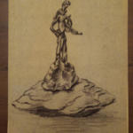 Bozzetto per scultura di un uomo stilizzato che sembra rientrare dal bosco con legni sotto braccio. Autore dell’opera: Franco Molteni. Dimensioni: 30×21.